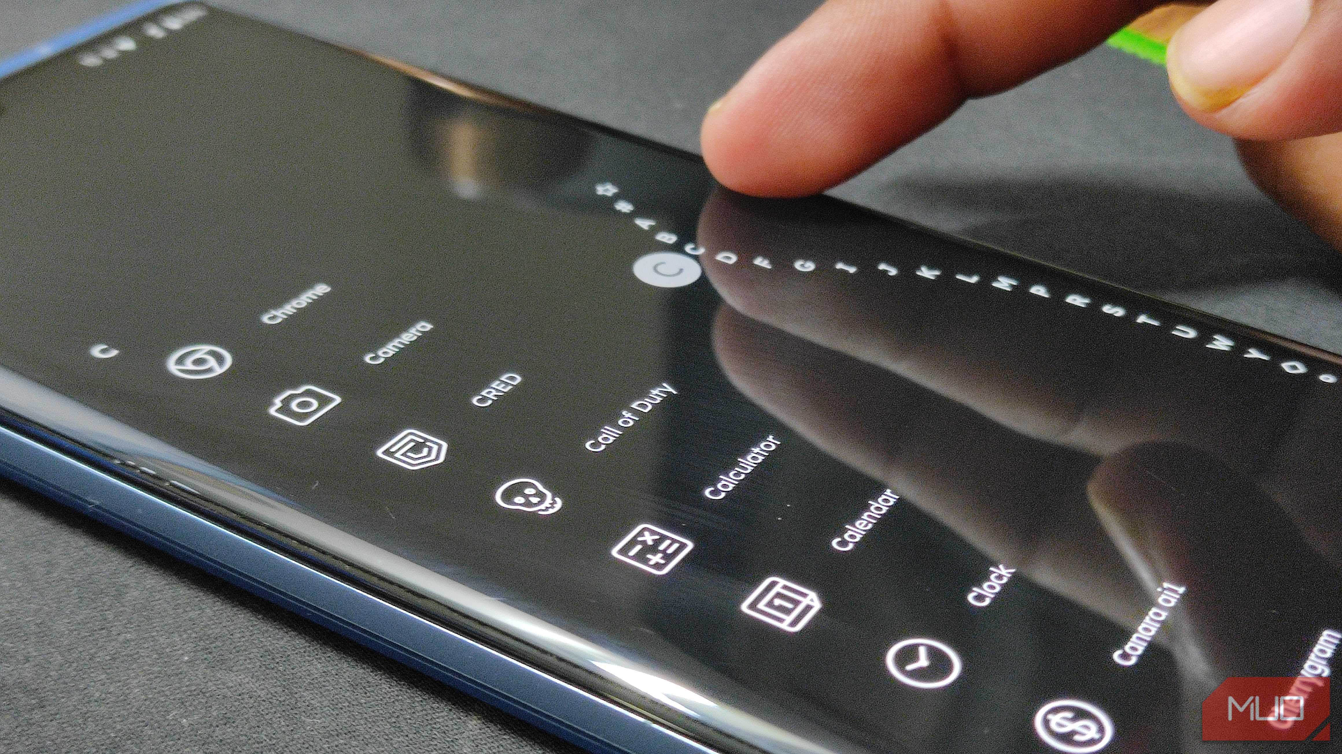 런처의 측면 알파벳 스크롤 막대는 앱 목록의 섹션으로 빠르게 점프할 수 있게 해 주므로 검색하지 않고도 앱으로 바로 이동할 수 있습니다. 이 디자인은 앱 목록을 탐색하는 것을 더 쉽게 만들어 손가락에 부담을 덜어 줍니다.