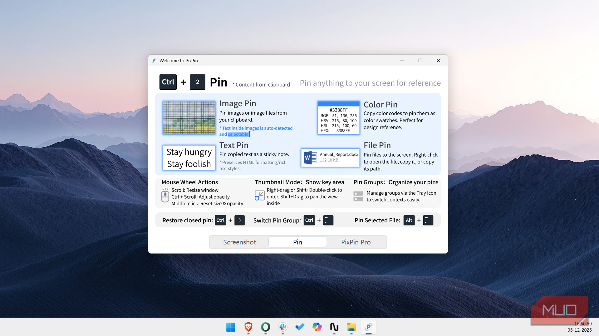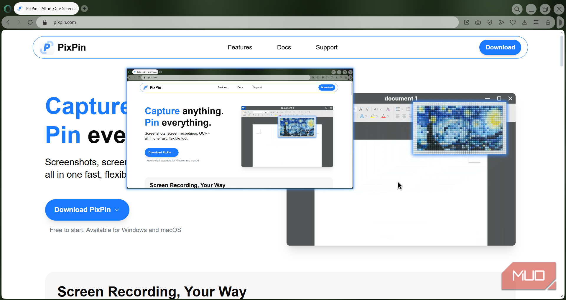 이름에서 힌트를 얻을 수 있습니다. 사진을 찍어 화면에 고정하는 방식이죠. 사진은 어디에 붙을까요? 디지털 스티커 메모처럼 화면에 고정됩니다. Snipaste를 사용해 본 적이 있다면 PixPin이 그 정신적인 후계자처럼 느껴질 것입니다. PixPin은 빠르고 가벼우며 기능이 풍부합니다.