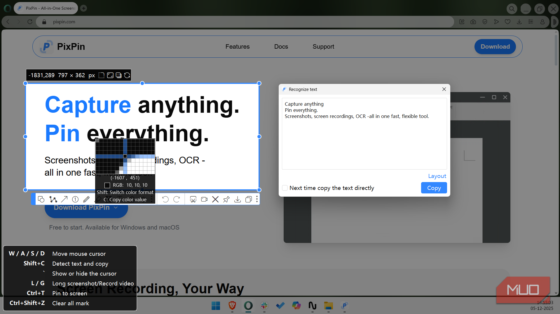 PixPin은 제 작업 흐름에서 현대적인 기본값으로 자리 잡았습니다. ShareX만큼 복잡하지 않지만 Windows 스크린샷 도구보다 훨씬 뛰어나며 완벽한 중간 지점을 제공합니다. 이 앱은 정적인 이미지를 동적인 생산성 자산으로 변환합니다.